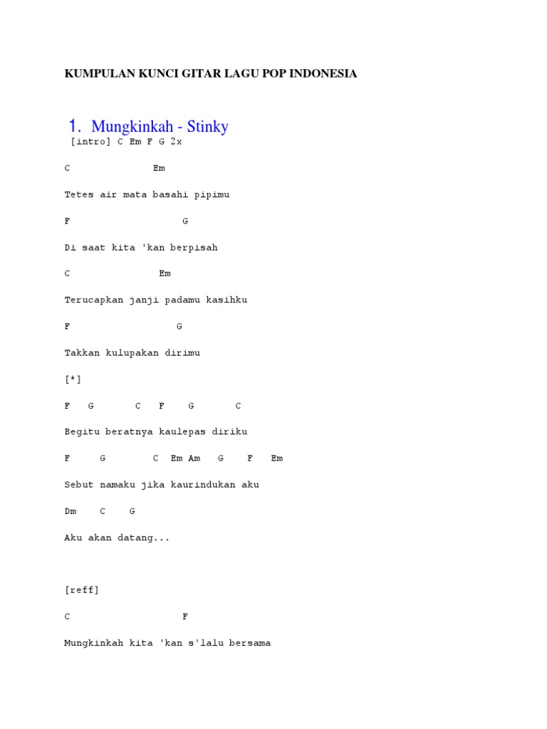 10+ Mungkinkah Stinky Kunci Gitar Pictures. chorus c f mungkinkah kita kan slalu bersama. chorus a# d# mungkinkah kita 'kan s'lalu bersama dm cm b f walau terbentang jarak antara kita a# d# biarkan kupeluk erat bayangmu dm cm b f tuk melepaskan semua kerinduanku, oh.
